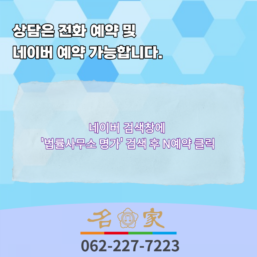 상담예약은 명가 사무실 062-227-7223으로 연락주시거나 네이버 예약으로 간편하게 하실 수 있습니다.