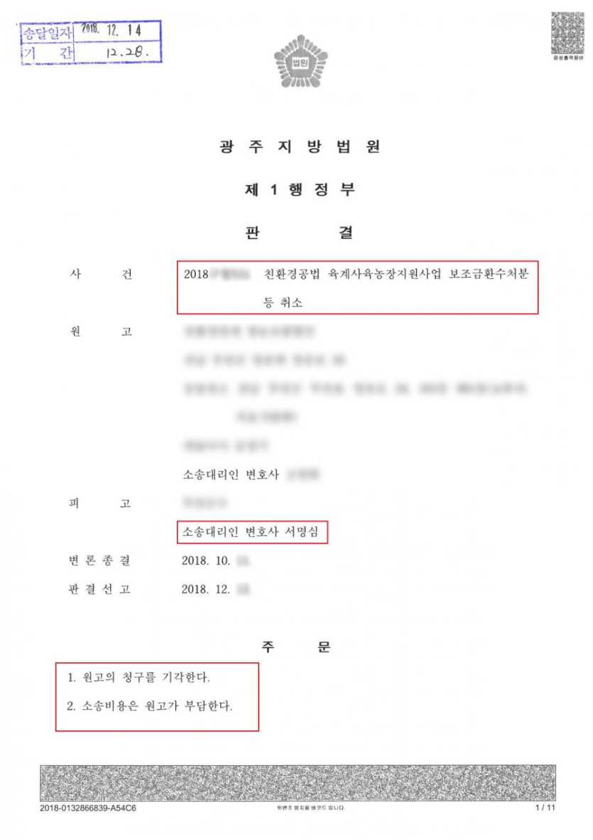 친환경육계 보조금 환수처분 취소소송을 방어하여 승소한(기각)사례를 소개해 드리도록 하겠습니다.