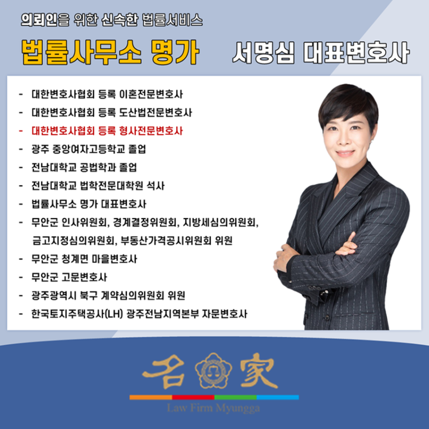 저희 법률사무소 명가 성범죄전문변호사들은 무고한 성범죄 피의자와 성범죄 피해자들을 위하여 일하는 대한변호사협회 등록 광주형사전문변호사입니다. 저희는 의뢰인들의 답답하고 억울한 사정을 의뢰인의 상황과 입장이 되어 공감하고, 철저히 분석하여 변호를 진행하고 있습니다.